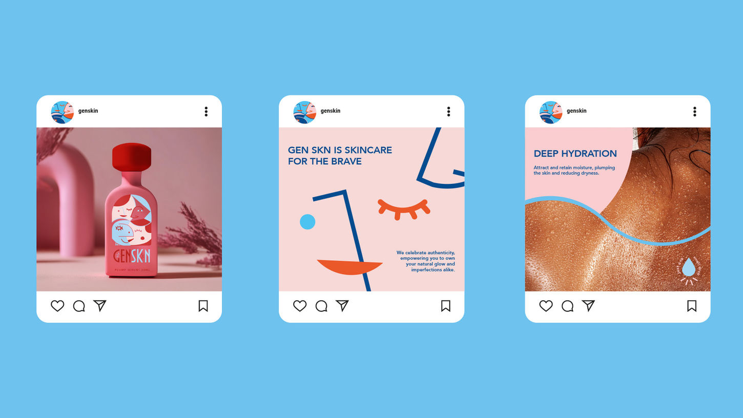 GenSkN is a bold, inclusive cosmetics brand redefining luxury in the world of serums. Unbound by gender and unapologetically expressive, the brand positions itself primarily in the online space—where its visual identity does all the talking.